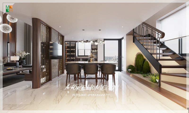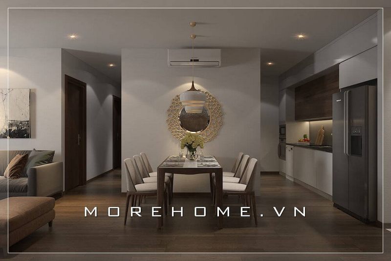 Thiết kế nội thất phòng ăn hiện đại, đơn giản và tiện lợi cho cư dân căn hộ.